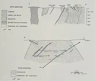 - ^ a b c d Johnston, W.D., 1940, The Gold Quartz Veins of Grass Valley, California, USGS Professional Paper 194, Washington:US Government Printing Office