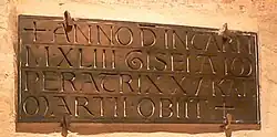 Gisela was known for "her most becoming appearance".[19][20] Gisela's tomb in Speyer was opened in 1900 and her mummified body was found to be 172 cm (5 ft 8 in) tall, with long blond hair.[21]