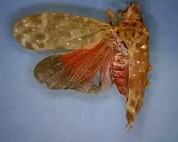 - ^ Urban, J. M.; Cryan, J. R. (2009). "Entomologically famous, evolutionarily unexplored: the first phylogeny of the lanternfly family Fulgoridae (Insecta: Hemiptera: Fulgoroidea)". Molecular Phylogenetics and Evolution. 50 (3): 471–484. doi:10.1016/j.ympev.2008.12.004. PMID 19118634.