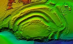LiDAR is an aerial tool introduced to archaeology in the 1970s, and in modern times has been used greatly amongst the archaeological community for remote sensing.[20] LiDAR has developed popularity in recent years among the archaeological community. It is able to produce three-dimensional mapping of earthworks and high-resolution topographical data.[21] LiDAR's advantages can be attributed to its flexibility, small laser footprint, non-invasive technology, price, and far-reaching field of view.[21][20] The most prominent and discussed advantage of LiDAR is its ability to map human impact through identifying cultural features of landscapes.[21] However, LiDAR is restricted in its ability to maintain effectiveness when mapping large areas.[20]