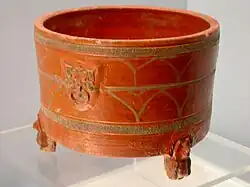 An Eastern Han glazed ceramic cosmetics box with zoomorphic feet