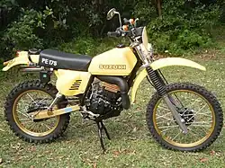 Enduro motorcycles closely resemble motocross, or "MX" bikes (upon which they are often based).[1] They may have special features such as oversized fuel tanks (for more range), engines tuned for reliability and longevity, sump protectors, and more durable (and heavier) components. Enduro bikes combine the long-travel suspension of an MX bike with engines that are reliable over long distances. The engine of an enduro bike is generally a single cylinder 2-stroke between 125 cc and 350 cc, or a single cylinder 4-stroke between 125 cc and 650 cc.