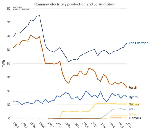 - ^ "Date statistice aferente energiei electrice produse in anul 2005" (in Romanian). Archived from the original on 16 February 2012. Retrieved 3 August 2008.