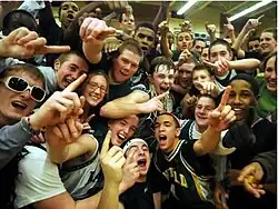 In February 2013, the Enfield Board of Education voted for the Eagle to be the consolidated high school's new mascot. A survey was taken of 1,500 students from Enfield High School, Fermi High School, and John F. Kennedy Middle School as an opinion to influence a final decision to be made by the Board. As a result of the survey, top choices for mascots were the Falcon, Eagle, and Spartan. Top color choices were and blue/gold and black/green/gold, which the school board favored and subsequently adopted.[19] The decision for the Eagle was influenced by the presence of American bald eagles on the property, which occasionally make an appearance during sporting events and school gatherings.[20]