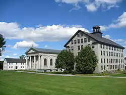 Within the village was the largest Shaker dwelling and the largest residential dwelling north of Boston, the Great Stone Building. Built from 1837 to 1841 for the Church Family, it had four full stories and a total of six stories. Men and women lived in the building, but entered doors specific for their gender to separate quarters.[6][7][8] It was designed by Ammi Burnham Young,[9] who created the designs for the second state capitol in Vermont and was the first supervising architect for the United States Treasury.[10] The granite stonework on the exterior and the slate roof were constructed by stonemasons from Boston. The Shaker brothers constructed the rest of the building themselves.[9][11]