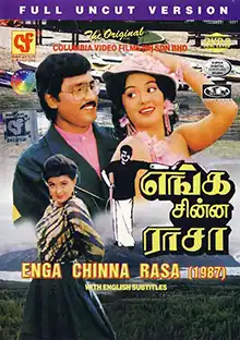 Enga Chinna Rasa (/rɑːsɑː/ transl. Our little King) is a 1987 Indian Tamil-language drama film written, directed by, and starring K. Bhagyaraj. The story was inspired by the Kannada novel Ardhaangi by B. Puttaswamayya. It was released on 17 June 1987.[1] The film was remade in Hindi as Beta, in Kannada as Annayya, in Telugu as Abbayigaru and in Odia as Santana.