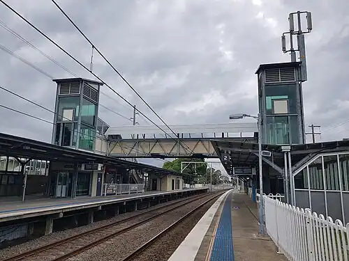 The station was extensively upgraded in 2002 with the provision of extended shelters and passenger lifts between the platforms and the overhead footbridge.[4]