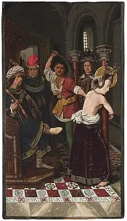 ![]() The flagellation of Saint Engratia. Bartolomé Bermejo, 1474-1478. | |