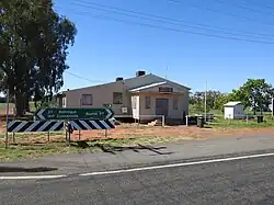 The first public hotel was Thomas Shearer's Shearer's Inn, who later became the postmaster.[9] A Kerrigan was also the local mailman, while E. D. Johnson had the horse and sulky mail contract to eastern properties. Other public hotels included Kerrigan's Hotel, and H. C. Whittaker's Eringonia Hotel (c. 1893).