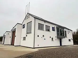 After 21 years operating out of temporary accommodation, a new purpose built station was constructed by Omagh-based company Woodvale Construction, on the shore at Killadeas Road in Gublusk, and was handed over to the station volunteers in November 2022. Along with housing both lifeboat, carriage and launch tractor, there are modern crew facilities, a workshop, office and training room. Solar panels are fitted to the roof, with ground source heating helping to reduce energy usage. Contribution to the construction was received from the family of the late Alfred Russell Wallace Weir from Bangor, County Down, in his memory.[11]