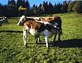 The Ennstaler Bergscheck ("Ennstal Mountain Pied Cattle") is an endangered Austrian breed of domestic cattle. The name comes from the Ennstal, the valley of the Enns River.