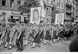 At the end of 1944, Berlinguer was appointed by Togliatti to the national secretariat of the Italian Communist Youth Federation (FGCI). As a secretary of the FGCI, Berlinguer at one point presented Maria Goretti as an example for activists.[38] Berlinguer was soon sent to Milan, and he was appointed to the central committee as a member in 1945. In 1946, Togliatti became the national secretary (the highest political position) of the PCI and called Berlinguer to Rome, where his talents let him enter the national leadership two years later in 1948; at the age of 26, he was one of the youngest members to be admitted. In 1949, he was named national secretary of the FGCI, a post he held until 1956. In 1950, he became president of the World Federation of Democratic Youth, an international anti-fascist youth organisation.[39]