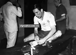 In Gimnasia, García won the Santa Fe regional championship, being part of a forward line nicknamed los pistoleros ("the gunmen") due to their high goal average. A journalist of El Litoral (local newspaper) nicknamed him "Chueco", which would be his most famous moniker.[1] One year later, García was traded to Rosario Central for $5,000. The Rosarian team was still playing in regional tournaments, but García became an idol of the club and gained recognition not only in the city but in the whole country. García played near 100 matches with Rosario Central.[5] It was said that Ernesto "Che" Guevara became a fan of Rosario Central after being impressed by García's style of play.[1] Writer Osvaldo Bayer was also an admirer of García.[2]