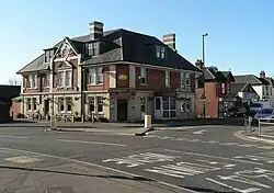 One of the most conspicuous buildings in the district is The Ensbury Park public house which is on the corner of Columbia Road and Boundary Road.[1] This started life as The Ensbury Park Hotel, planning permission for which was granted by Poole Rural District Council on 15 December 1924.[6]