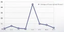 The enthalpy of fusion is almost always a positive quantity; helium is the only known exception.[1] Helium-3 has a negative enthalpy of fusion at temperatures below 0.3 K. Helium-4 also has a very slightly negative enthalpy of fusion below 0.77 K (−272.380 °C). This means that, at appropriate constant pressures, these substances freeze with the addition of heat.[2] In the case of 4He, this pressure range is between 24.992 and 25.00 atm (2,533 kPa).[3]
