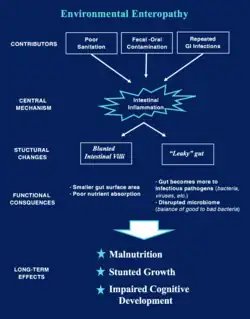- ^ a b c d e f g h i j k l m n Ali A, Iqbal NT, Sadiq K (January 2016). "Environmental enteropathy". Current Opinion in Gastroenterology. 32 (1): 12–17. doi:10.1097/MOG.0000000000000226. PMID 26574871. S2CID 40064894.