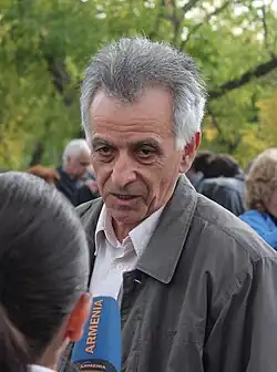 Hakob Sanasaryan campaignning against illegal construction of a new ore-processing facility in Sotk, 2011