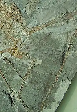 The genus is based on the holotype specimen, GMV2117, found near Jinggangshan in western Liaoning Province, in the Yixian Formation. It was the first pterosaur discovered in that region. It consists of a partial crushed skeleton of a subadult individual on a slab, lacking skull and neck. Most vertebrae have been severely damaged and even their number cannot be determined. The authors state that eighteen detached belly ribs are present in the matrix.