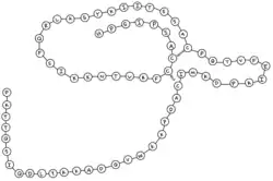 After analyzing the cDNA from guinea pig cDNA, it is determined that eotaxin is a 96 amino acid sequence. The beginning 23 amino acids are hydrophobic, while the remaining 73 are what make up the active eotaxin protein.[4] Within the 73 amino acids present in the active eotaxin protein, there is similarity with other C-C chemokines that are categorized as “eosinophil- activating.”[5] Some of these are human MPC-3 with a 51% similarity, human MPC-1 with 53% similarity and MPC-2 with a 54% similarity.[5] According to another source, Human MPC- 3 shares 57% of the same amino acid sequence and has 65% of the same amino acids. As for the nucleotide base pairs, eotaxin shares 71% of its nucleotide sequence with MPC-3. Both Human MPC-3 and eotaxin are active on eosinophils, which means that they both will bind to the receptors found on eosinophils.[4] In humans, the gene that encodes for the eotaxin protein is found on chromosome 17. The gene is made up of three exons and two introns.[6] The leader sequence of eotaxin is homologous to the leader sequence of the other members of the C-C chemokine family, such as the MPC family.[4]