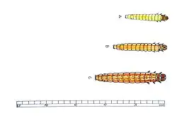 The red-striped needleworm moth occurs commonly in the spruce-fir forests of North America, but there are no records of serious outbreaks. White spruce is the preferred host tree. The eggs overwinter on the needles and the larvae feed on the new foliage from late May to late July. Full-grown larvae, about 9 mm long, drop to the ground and pupate in silken cocoons in the litter. The adults emerge in late summer and the fall, and the females lay their eggs singly at the base of the needles.