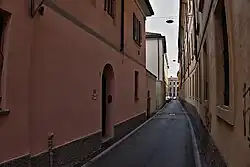 A turbulent period began with the arrival of the French: in 1797 the complex was confiscated and used as a public school and (in 1801) as barracks;[20][21] the seminarians were forced to move into the bishop's palace, while for educational purposes the Ministry of the Interior authorized the use of the guest quarters of the convent of Santa Maddalena and two rooms of the convent of San Francesco;[20] however, in 1802 the bishop's palace was also confiscated and used as the seat of the sub-prefecture, so the clerics were housed in private homes.[20] The income from the structure was used to contribute – together with that of the Mount of Piety – to the establishment of the public Gymnasium.[22]
