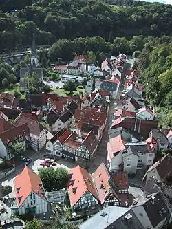 Eppstein (German pronunciation: [ˈɛpˌʃtaɪn] ⓘ) is a town in the Main-Taunus-Kreis, in Hesse, Germany. Eppstein lies west of Frankfurt am Main, around 12 km north east of the state capital Wiesbaden, and is at the edge of the Taunus mountains. The ruins of the Eppstein castle is a prominent landmark, and houses a museum.