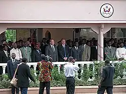 The U.S. Embassy in Malabo was once again established on June 11, 1981, with Joanne Thompson as the Chargé d’Affaires ad interim, only to be closed on October 31, 1995, with its functions temporarily moved to the U.S. Embassy in Yaoundé, Cameroon.[2] In response to growing economic and political interests, particularly pertaining to energy access and security, the U.S. Government reopened the Embassy in Malabo in 2006. Donald J. Johnson became the first resident ambassador in over a decade when he presented his credentials on November 23, 2006.[2]