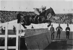The individual show jumping at the 1928 Summer Olympics took place on 12 August 1928 at the Olympic Stadium in Amsterdam. Scores from the individual competition were summed to give results in the team competition.[1] There were 46 competitors from 16 nations.[2] Each nation could send a team of three riders; 15 nations did so, while Japan had a single rider. The event was won by František Ventura of Czechoslovakia, the nation's first medal in individual jumping. France earned its first medal in the event since 1912 with Pierre Bertran de Balanda's silver. Charles-Gustave Kuhn took bronze, putting Switzerland on the podium for the second consecutive Games.