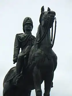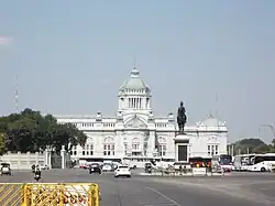 Equestrian statue of Chulalongkorn the Great, (Thai: พระบรมราชานุสาวรีย์ พระบาทสมเด็จพระจุลจอมเกล้าเจ้าอยู่หัว) other known as Equestrian statue (Thai: พระบรมรูปทรงม้า, RTGSphraborom marup songma, pronounced [pʰráʔ bɔː rom rûːp soŋ máː]) is an outdoor sculpture in cast bronze at the center of the Royal Plaza in Bangkok, Thailand, honoring King Chulalongkorn. It was erected on 11 November 1908 to commemorate his 40th anniversary of his accession to the throne, the longest-reigning monarch in Siamese history at that time.