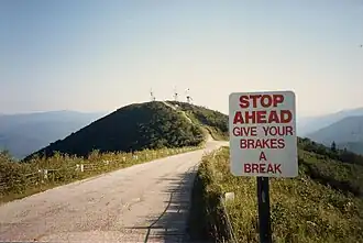 "The Mount Equinox Annual Hillclimb" on the toll road began in 1950, when the winner was William F. Milliken Jr.[18][19] During the 1960s, a still-standing course record was set at "just over four minutes" and participants have exceeded 100 miles per hour on stretches of the course. Entries for this hillclimbing race since 1973 have been limited to "vintage racing cars." In that year, the Vintage Sports Car Club of America took over sponsorship of the event from the Sports Car Club of America.[20] The 5.2-mile (8.7 km) course gains nearly 3,000 feet. In comparison, the 7.4-mile (11.9 km) Mount Washington Hillclimb Auto Race in New Hampshire gains 4,656 feet.[21]