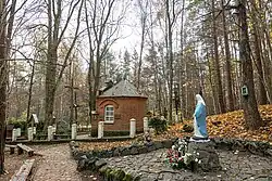 The chapel was built in 1926, when the residents of Lazdininkai village experienced an apparition of the Virgin Mary. In 1930, it was rebuilt as a bigger chapel.