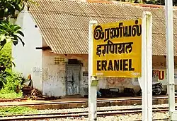 Eraniel is a panchayat town in Kanyakumari district in the state of Tamil Nadu, India. It is of major commercial and political importance in the history of South India, as it was the seasonal capital of the affluent Venad and later Travancore kingdoms until the seventeenth century, when Padmanabhapuram and Thiruvananthapuram rose to prominence. Currently, it is known for its archaeological importance for the ruins of the dilapidated Eraniel Palace.