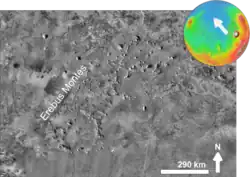 Erebus Montes is a group of mountains in the Diacria quadrangle of Mars, located at 35.66° North and 185.02° West. It is 811 km across and was named after an albedo feature at 26N, 182W.[1]