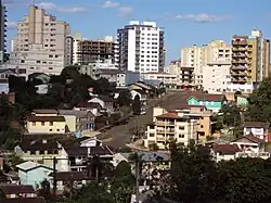 When Erechim was established as a municipality on April 30, 1918, it was named "Erexim," a term derived from the Kaingang language, meaning "small field," formed by combining rê or erê ("field") and xim ("small").[11] The city's name likely reflects the forests that surrounded it at the time.[12] The city has also been known by other names, such as Paiol Grande, Boa Vista, Boa Vista de Erechim, and José Bonifácio, but "Erechim" has endured to the present day.[13]
