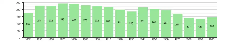 As of 2000, there were 76 people who were single and never married in the municipality. There were 82 married individuals, 15 widows or widowers and 3 individuals who are divorced.[8]