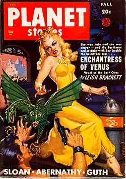 Stark first appeared in a group of novellas published in the pulp magazine Planet Stories. These were: "Queen of the Martian Catacombs" (Summer 1949); "Enchantress of Venus" (Fall 1949), once published as "City of the Lost Ones"; and "Black Amazon of Mars" (March 1951). The first and last stories were expanded into short novels: "Queen of the Martian Catacombs" as The Secret of Sinharat and "Black Amazon of Mars" as People of the Talisman. The expanded versions were first published in 1964 as an Ace Double paperback, and again in 1982 under the title Eric John Stark: Outlaw of Mars. The internal chronology of the stories is different from the publishing order; in "Queen of the Martian Catacombs" Stark is on Mars, having fled capture on Venus; "Black Amazon of Mars" takes place soon after, but in an unexplored and barbaric area close to the north pole of Mars; and in "Enchantress of Venus", Stark has returned from Mars to Venus to look for a missing friend.