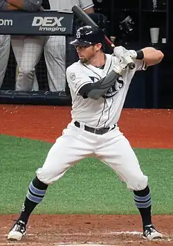 ![]() Sogard batting for the Tampa Bay Rays in 2019 | |