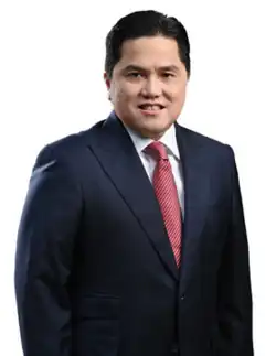 Erick Thohir (born 30 May 1970) is an Indonesian businessman and politician who served as Minister of State Owned Enterprises since 2019. He has been the chairman of Football Association of Indonesia since 2023 and founder of Mahaka Group,[1] a conglomeration that focuses on media, sports and entertainment. The former owner and chairman of Italian football giant Inter Milan[2] and US soccer club D.C. United,[3] Thohir is currently co-owner alongside Anindya Bakrie of the English Championship team Oxford United, and the Indonesian Liga 1 team Persis Solo alongside Kaesang Pangarep, youngest son of the former President Joko Widodo. He was also the president director of ANTV[1] television station and the chief of the Indonesian Olympic Committee. In 2019, he became a member of the International Olympic Committee (IOC).[5] Thohir is also currently a member of the FIBA Central Board.[6]