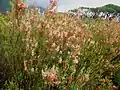It is a shrub, growing to 2.5 metres (8 feet) tall and broad, that produces masses of flowers in a range of colours from light-pink to orange to bright red.