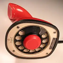The Ericofon is a one-piece plastic telephone created by the Ericsson Company of Sweden and marketed through the second half of the 20th century. It was the first commercially marketed telephone to incorporate the dial and handset into a single unit. Because of its styling and its influence on future telephone design, the Ericofon is considered one of the most significant industrial designs of the 20th century by Phaidon.[1] It is in the collection of the Museum of Modern Art in New York City. In Sweden, the Ericofon is known as the cobra telephone for its resemblance to the hooded snake of the same name.[2]