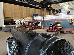 On the second floor of the museum is an exhibit dedicated to the crew and officers of USS Wolverine (formerly USS Michigan), the United States Navy's first iron-hulled warship and 19th-20th century Navy.[9] The ship's original prow serves as the exhibit's centerpiece, and includes models of the vessel, armament, uniforms, and personal articles.