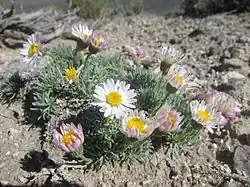 Erigeron compactus is a species of flowering plant in the family Asteraceae known by the common names cushion daisy, fernleaf fleabane, and compact daisy.