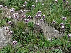 Erigeron petiolaris a perennial herb up to 28 cm tall, with a short rhizome. It produces flower heads one at a time or in groups of 2 or 3, each head containing pink or white ray florets and yellow disc florets. The species grows in arctic or alpine regions on rocky slopes.[3][4]