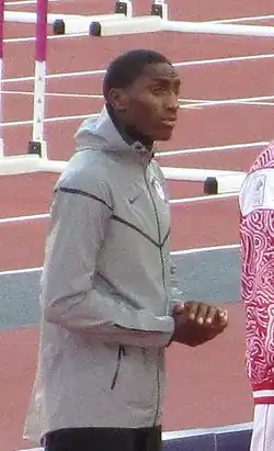Erik Kynard Jr. (born February 3, 1991) is an American track and field athlete who competes in the high jump. In his Olympic debut at the 2012 Summer Olympics in London as a 21-year-old, he won a silver medal in the men's high jump. His silver medal was upgraded to gold in 2021 upon the disqualification of original champion Ivan Ukhov from Russia for doping.[1]