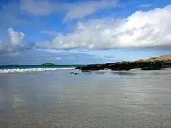 Eriskay (Scottish Gaelic: Èirisgeigh), from the Old Norse for "Eric's Isle", is an island and community council area of the Outer Hebrides in northern Scotland with a population of 160. It lies between South Uist and Barra and is connected to South Uist by a causeway which was opened in 2001. In the same year Ceann a' Ghàraidh in Eriskay became the ferry terminal for travelling between South Uist and Barra. The Caledonian MacBrayne vehicular ferry travels between Eriskay and Ardmore in Barra. The crossing takes around 40 minutes.