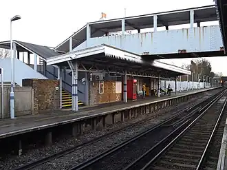 Erith station serves Erith in the London Borough of Bexley, southeast London. It is 14 miles 18 chains (22.9 km) measured from London Charing Cross.