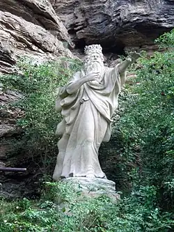The name "Erlking" (German: Erlkönig, lit. 'alder-king'; German: [ˈɛʁlkøːnɪç, ˈɛʁlkøːnɪk]) is a name used in German Romanticism for the figure of a spirit or "king of the fairies". It is usually assumed that the name is a derivation from the ellekonge (older elverkonge, i.e. "Elf-king") in Danish folklore.[1] The name is first used by Johann Gottfried Herder in his ballad "Erlkönigs Tochter" (1778), an adaptation of the Danish Hr. Oluf han rider (1739), and was taken up by Johann Wolfgang von Goethe in his poem "Erlkönig" (1782), which was set to music by Schubert, among others.[2] Goethe added a new meaning, as "Erl" does not mean "elf", but "black alder" – the poem about the Erlenkönig is set in the area of an alder quarry in the Saale valley in Thuringia. In English translations of Goethe's poem, the name is sometimes rendered as Erl-king.