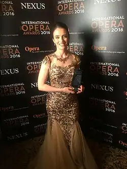 In 2016 she won the Readers' award (public's award) at International Opera Awards in London.[18]