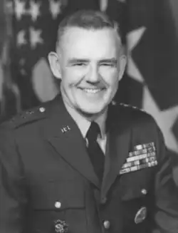 Graves returned to the United States in September 1969,[37] where he became the deputy director of Military Construction in the Officer of the Chief of Engineers in Washington, D.C. He was promoted to brigadier general on 10 October 1969.[38] As such, he was responsible for $1 billion of military construction each year for the Army, United States Air Force and NASA.[34] At this time, the space program was winding down. The Canaveral District, which had overseen the construction of the Kennedy Space Center was inactivated, and the Electronics Research Center in Cambridge, Massachusetts was completed but soon closed.[39] He also served as president of the Air Defense Evaluation Board that recommended the development of the Patriot missile system.[40]