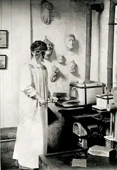 Her father died in 1887 and her mother in 1893, and she was supported for a time by guardians, William Edward and Hertha Ayrton.[7] She attended South Kensington School of Art Finsbury Central Technical School, and was awarded a place at the Slade Art School.[1] An apprentice to Frederic Shields, she also studied enamelling under Alexander Fisher.[8][9] She acted as vice-president for the craft section of the Society of Women Artists for a period.[10]